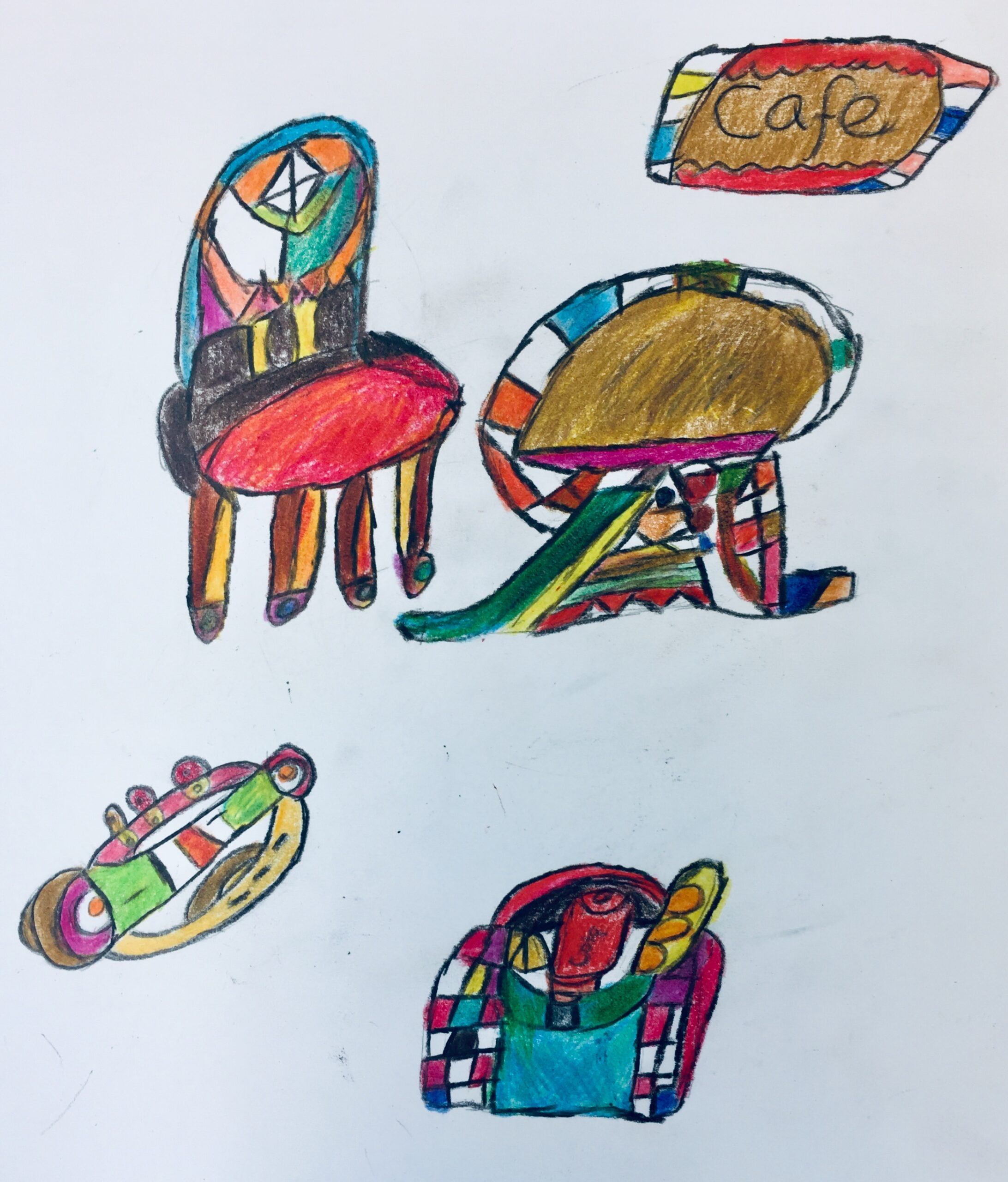 Plank ArtORO Cafe Cafe - Hai Zeng Ko 21 x 24 cm Kleurpotlood | 2020 € 21,- (excl. lijst) Plank ArtORO Andere werken Kwik en Kwak Boedha Samen huilen Shrek Samen dansen Stoute dame